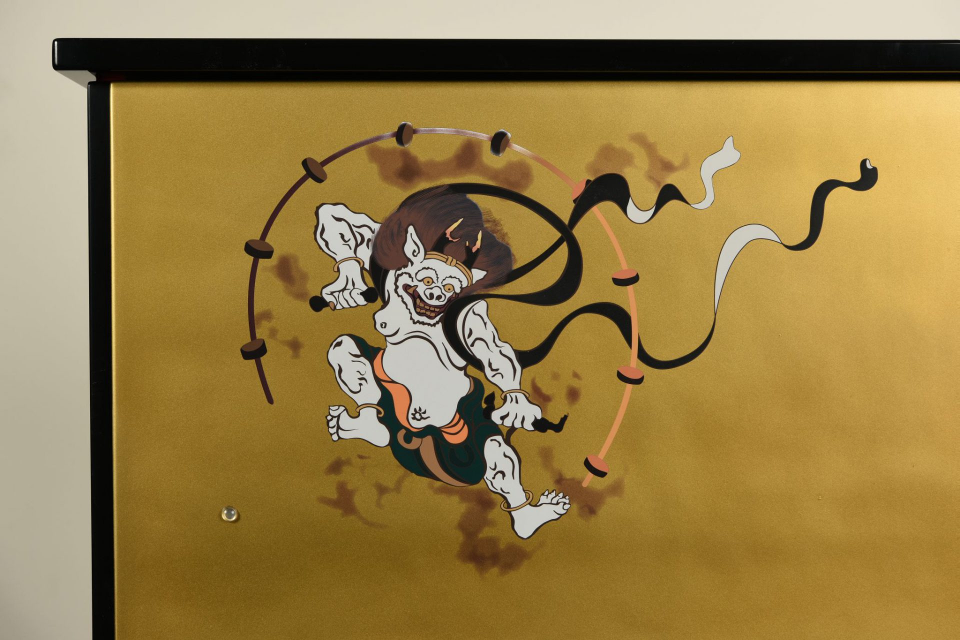 本体のサイドには、高位を表す色とされる紫の房を装飾してあります。 日本ならではの奇抜な構図が和の空間を演出します。