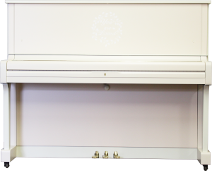 白いアップライトピアノ